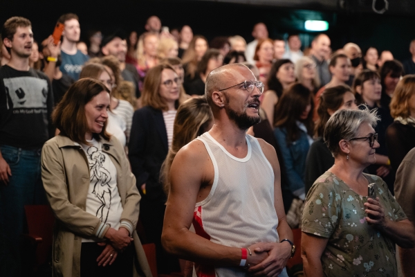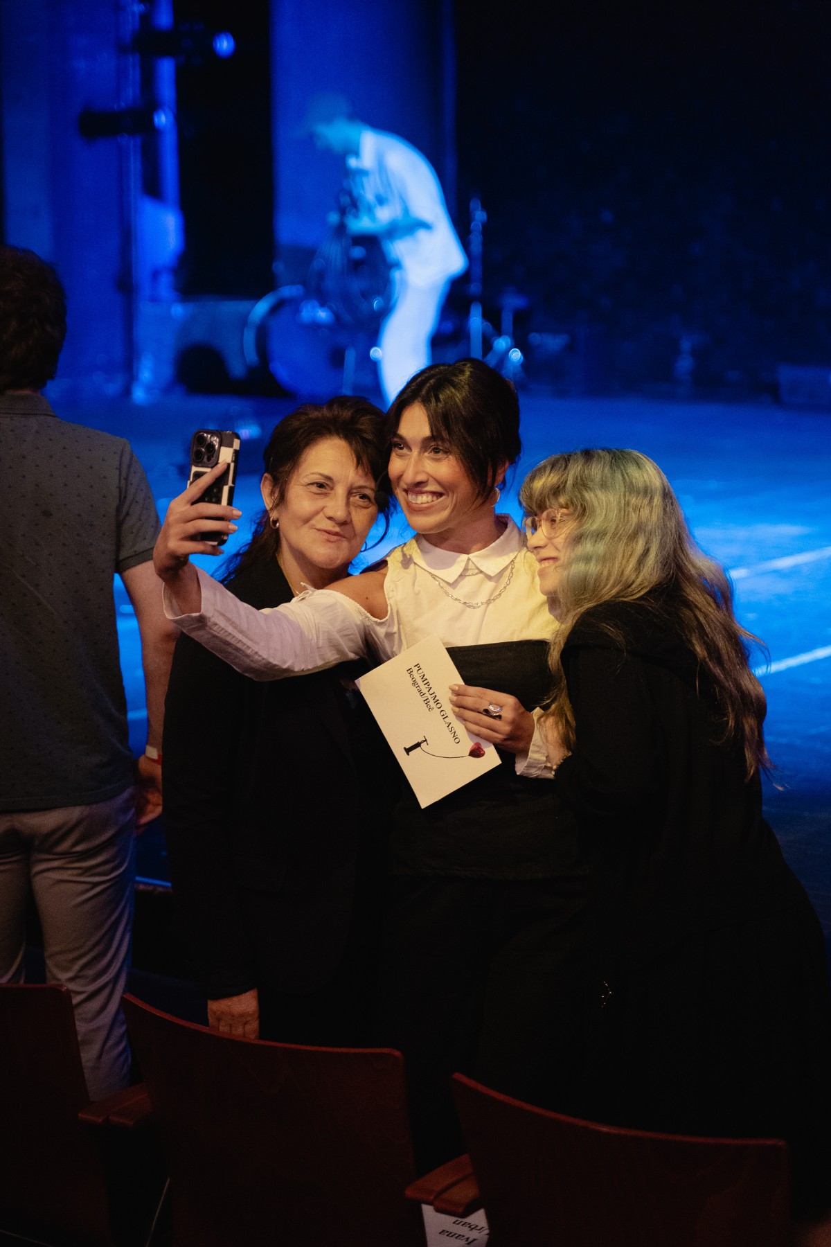 Ausgangspunkt ist der Sprechchor Pumpajmo glasno (Lass uns laut pumpen), den Ensemblemitglied Tina Keserović mit Mitgliedern der serbischen Diaspora aus Wien und Linz entwickelt hat: Stimmen, die den Rhythmus der Proteste aufnehmen, Stimmen, die Wut, Hoffnung und Beharrlichkeit tragen. Die Künstlerin Zoe Gudović wirft in einem Live-Essay ihren ganz persönlichen Blick auf die politischen Verwerfungen der Region. Dazu bringt die Band Deca iz Vode – EKV-Tribute-Band und Begleiterin der Proteste – ihren Sound und ihre Erzählungen von den Straßen Belgrads auf die Bühne. Der Kurzfilm Tačka pucanja (Bruchpunkt) von Lazar Jovanović, die Aktivist:innen von Blokada Beč, unterschiedliche Stimmen aus Serbien und die Wiener Punkband Ausländer eröffnen weitere Perspektiven auf Widerstand und Solidarität. Zum Abschluss: eine Stunde Tanz zu den Sounds der Queer Yugo Pop Party. Die Bühne wird zum Auftakt der neuen Saison mit allen eingetanzt. Im Schauspielhaus