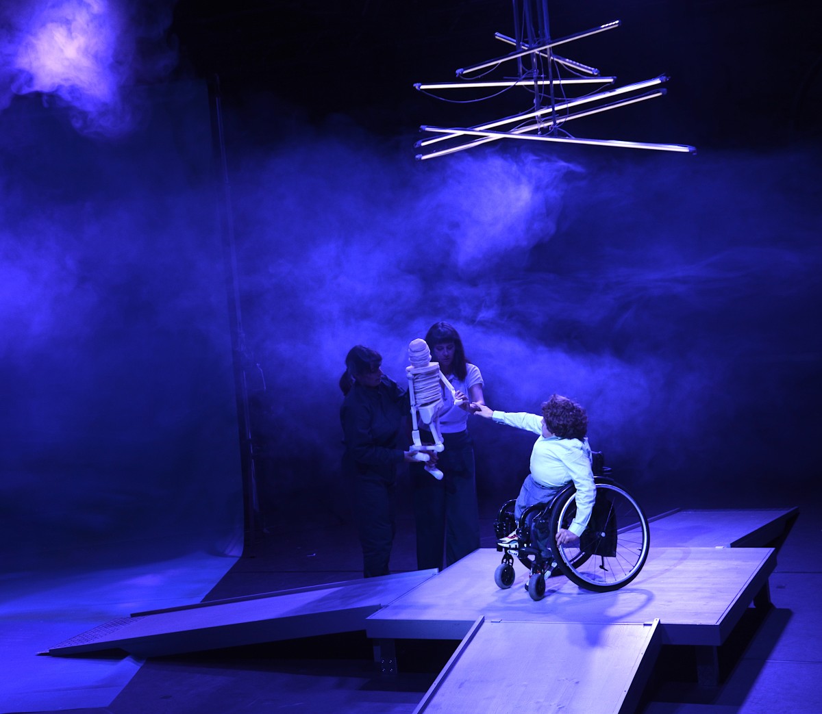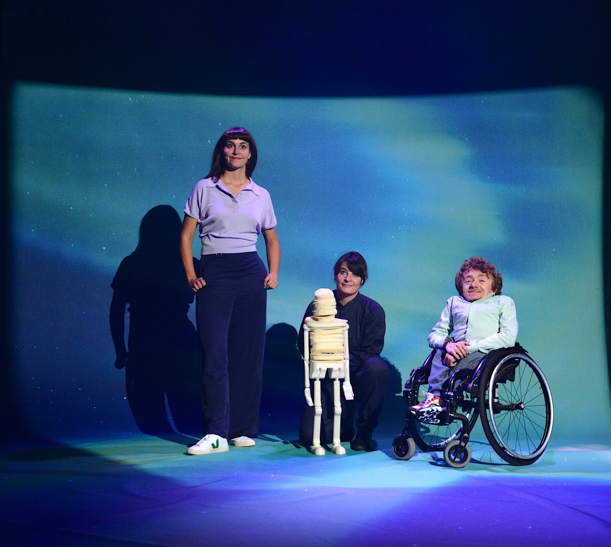 Marie Bues und Anouschka Trocker inszenieren diese Schauspielhaus-Eigenproduktion in Koproduktion mit dem Kosmos Theater Wien und dem Kunstfest Weimar. Teil der Bühnenversion sind Sprachaufnahmen aus dem gleichnamigen Hörspiel, das im Herbst 2023 bei Deutschlandfunk Kultur und Ö1 ausgestrahlt wird. So entstehen eine Radio- und eine Theaterversion dieses Stückes – für Schauspieler:innen mit und ohne Behinderung, die den vielen Stimmen ihre Körper leihen.